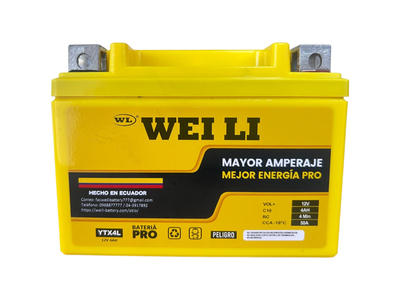 BATERIA PRO AGM/GEL PARA MOTO YTX4L  (12V 4.2AH) POLO (- +) PRECIO NORMAL $15.54